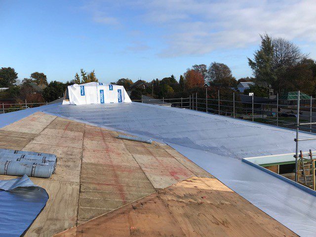 RoofLogic specified the Ultratherm Xtreme system with Derbigum membrane for the project. Designed to perform as a diaphragm, the new plywood roof structure was installed without fall. The RoofLogic system introduced the required falls with the use of tapered insulation board.
