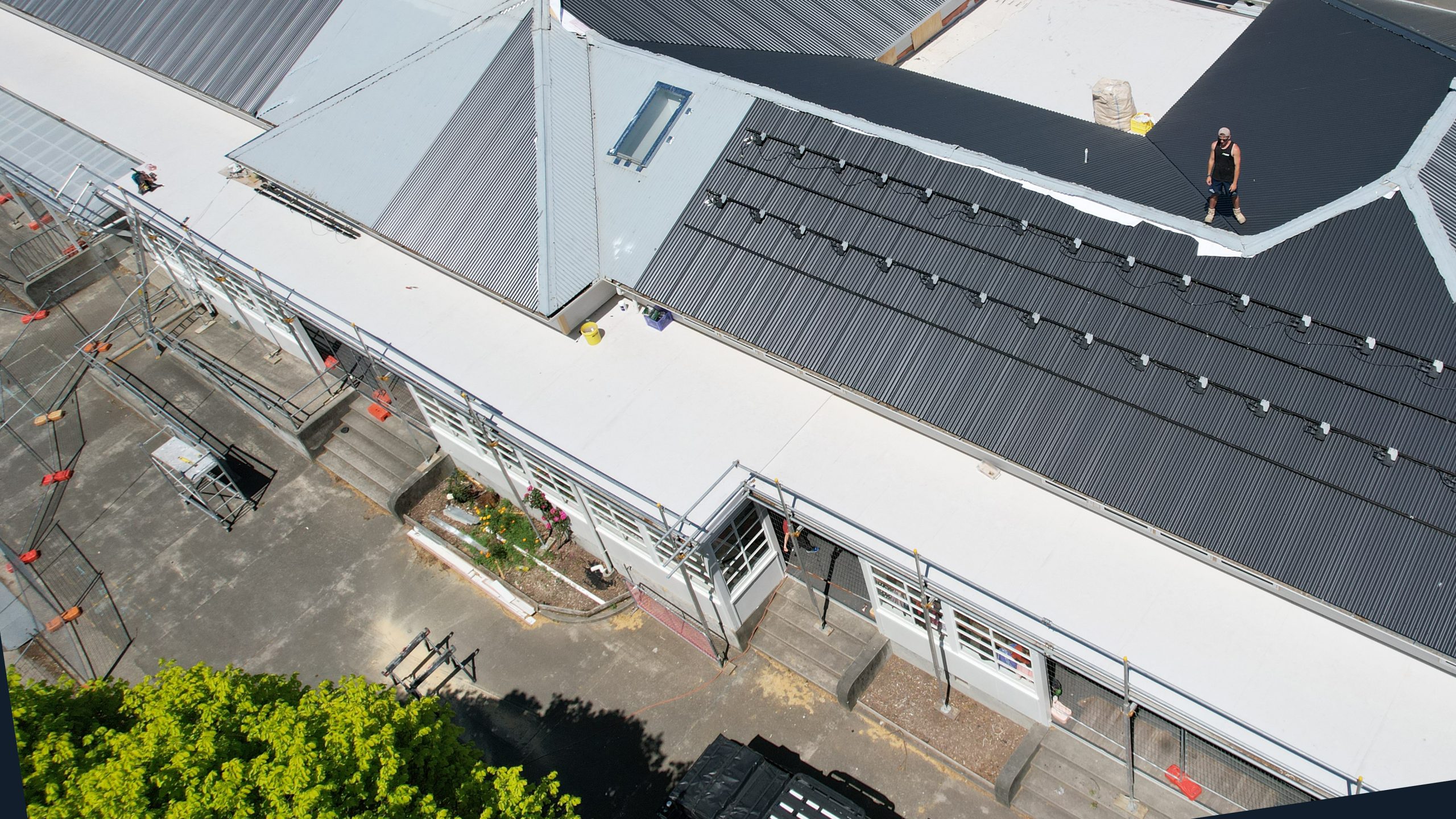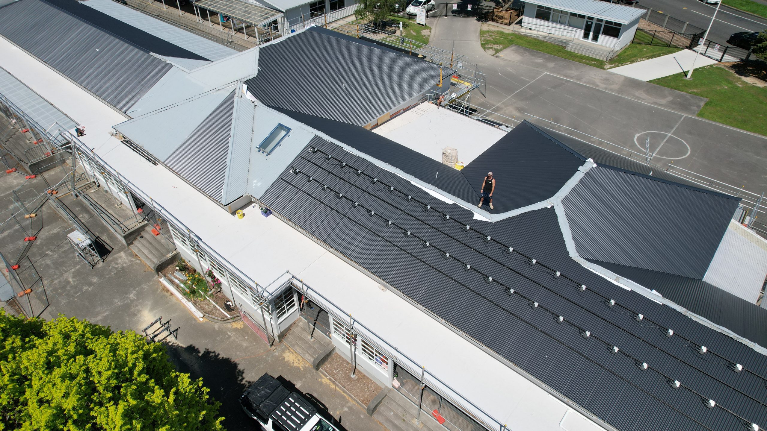 Douglas Park School is a primary school in Masterton. The Admin Block had weathertightness issues and needed to be repaired. The re-roofing project featured RoofLogics’ Recover system with FiberTite membrane over two distinct roof types. On one type, Recover Ultratherm Xtreme was applied over the existing profiled metal roof, with Tapered PIR boards to re-pitch the roof to a minimum of 3°. The second scenario involved a new roof over the existing membrane with plywood substrate, with Tapered PIR boards once again utilised to achieve a minimum pitch of 3°.