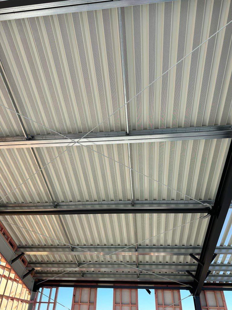 The Hawke’s Bay Food Innovation Hub will serve as a dynamic innovation centre for food industry professionals to gather, collaborate, and innovate. work-in-progress images from this ambitious project reveal the -temporarily- un-filled perforated LinerDeck alongside the FiberthermX roof system. The perforated LinerDeck with acoustic infills allows the roof system to become an acoustic absorber, (boasting an NRC of 0.7) for effective interior reverberation control.