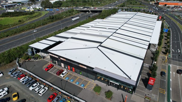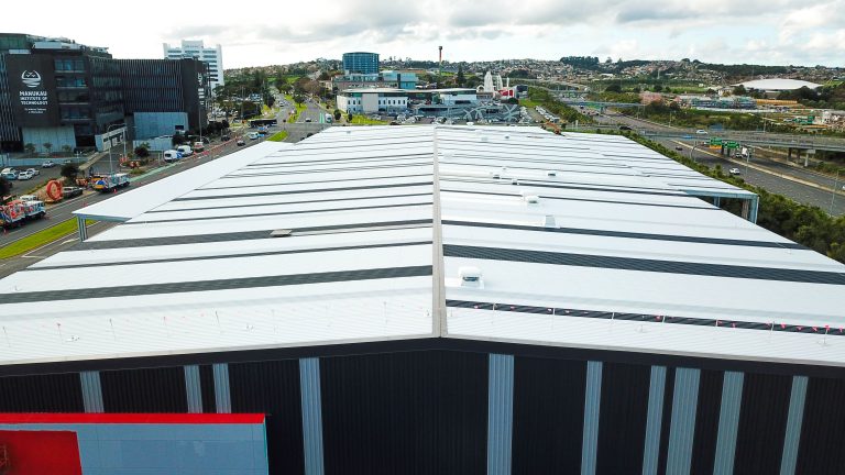 The RoofLogic system buildup at MIT Tech Park consists of the RL Liner Deck, RL Fibertherm Insulation, RL Structural Post and Rail, and RL TopDeck T.