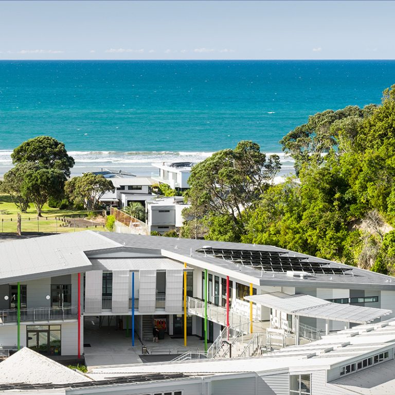 Ohope Beach School is located east of Whakatāne and just a stone’s throw from the sea. The redevelopment includes a new two-storey innovative learning block with an equivalent to 11 new teaching spaces, grouped in sets of two or three hubs.