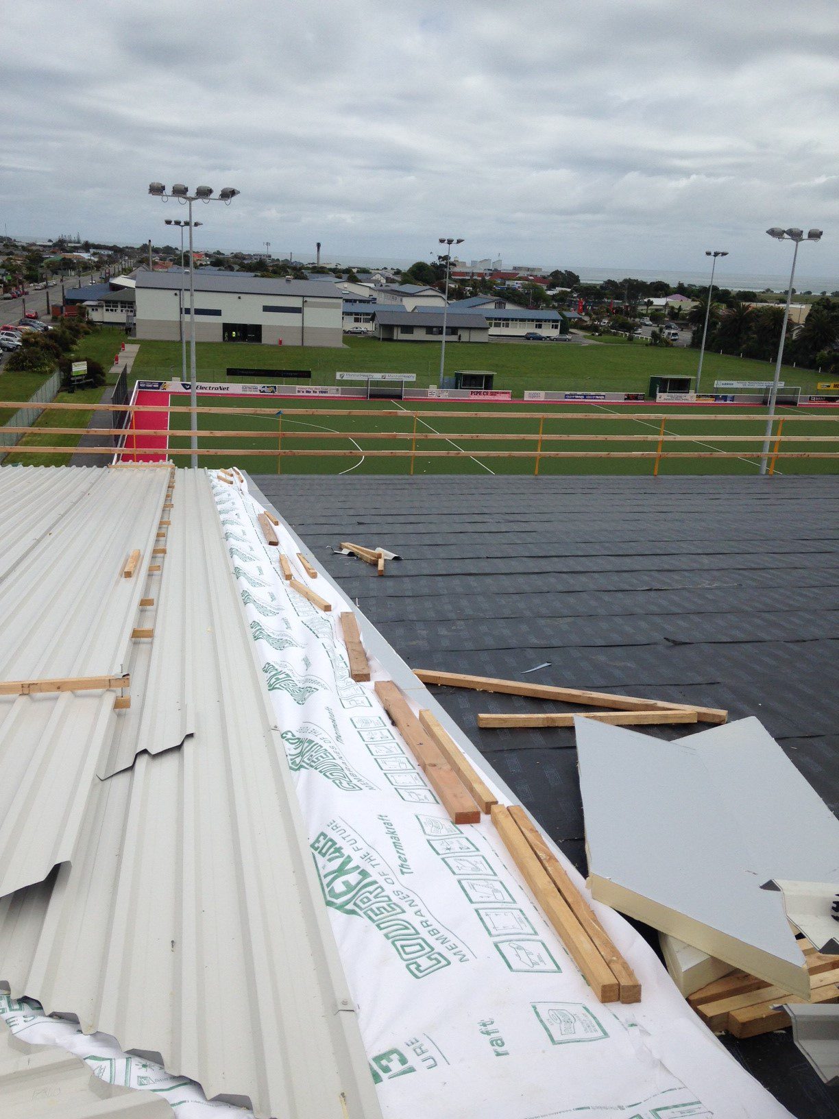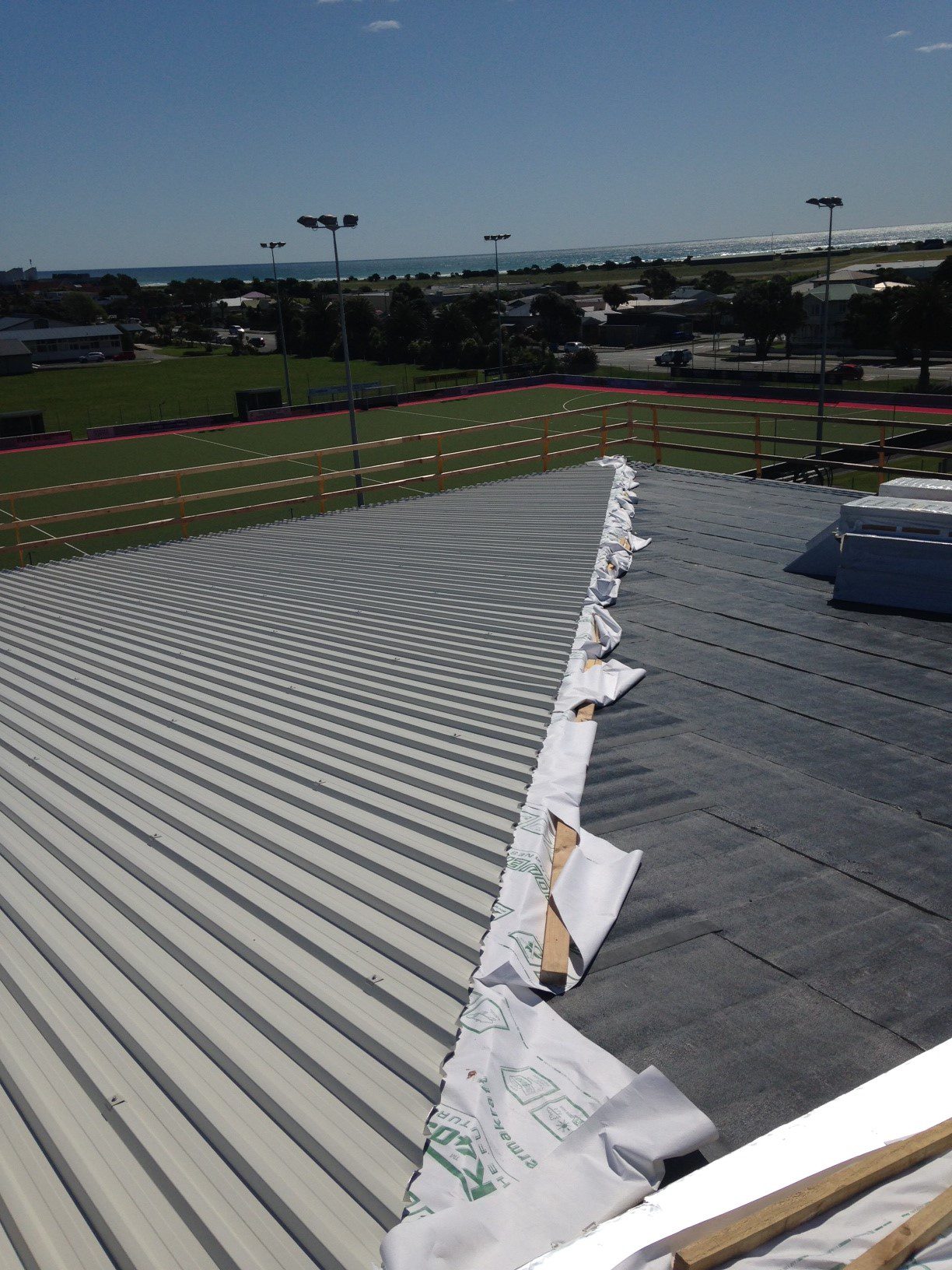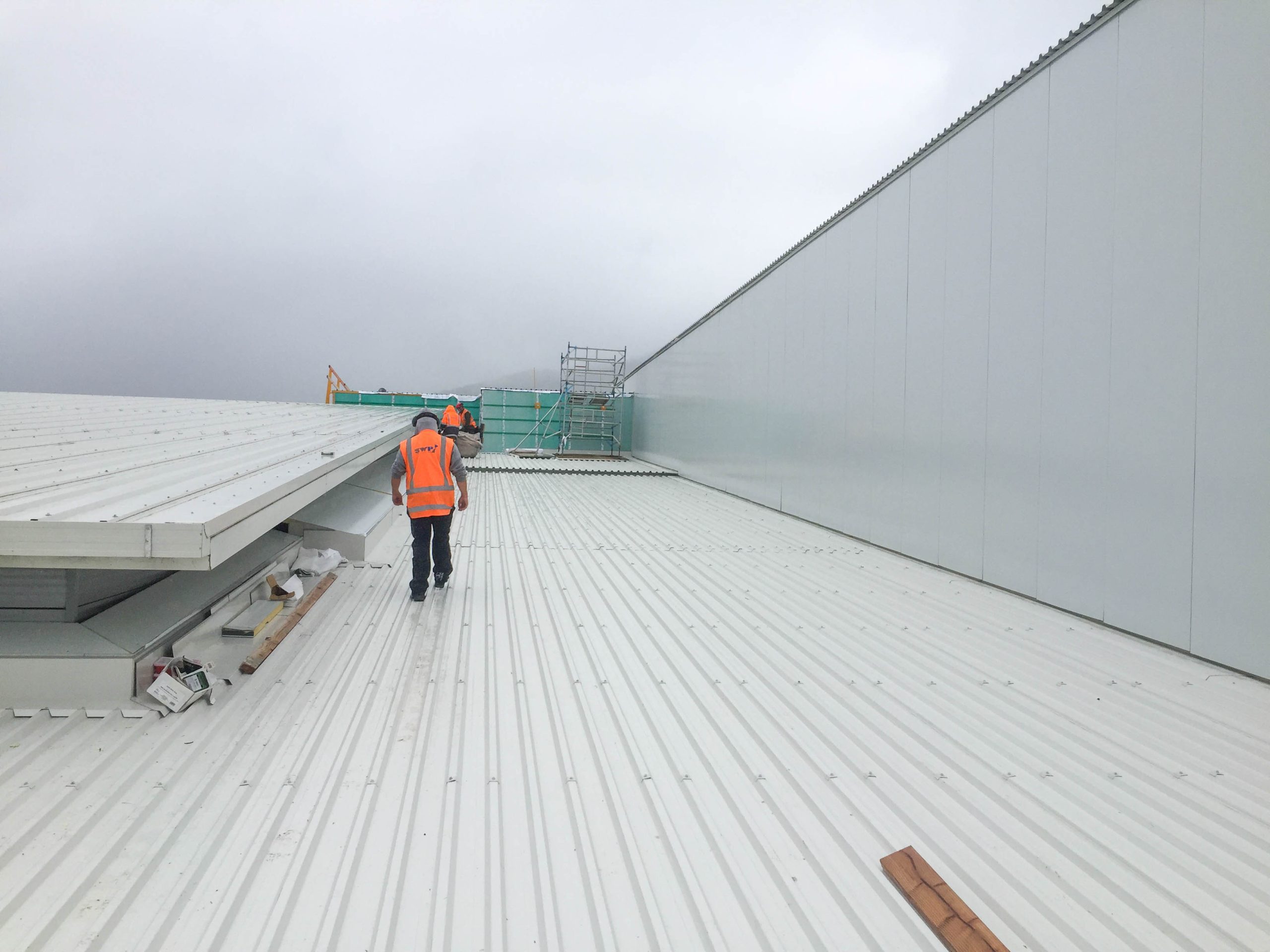 The client briefly considered the use of a composite insulated panel but because of the length of the roof (around 25 metres ridge to gutter) this was seen as a potential weather-tightness risk.  The composite panels would have had to be supplied in relatively short lengths and butted/sealed together on the roof.  In contrast, the RoofLogic system enabled the roof to be installed as a single sheet 25 metres in length.